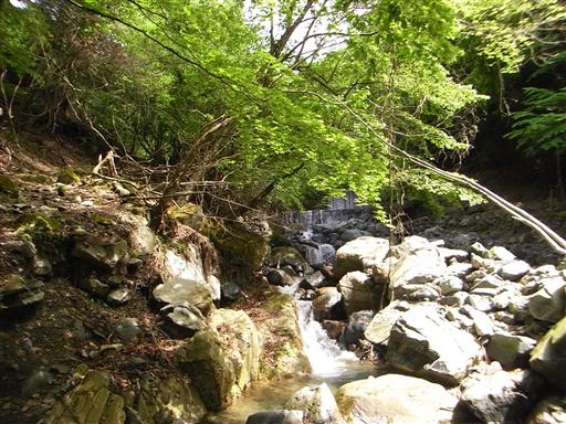 登山道は樹木に覆われているため、滝の見学ポイントは無い。
