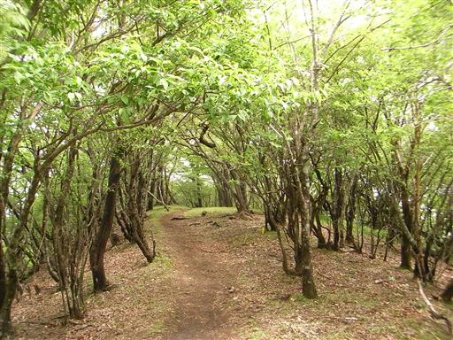 大室山へ続く稜線は美しい樹林帯が続いている。