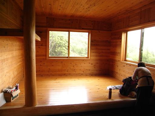 避難小屋を覗いてみると、非常にきれいで快適そうだ。