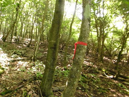 下草はないので、赤テープはあまり気にせず登っていく。