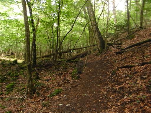山頂に近づくと笹薮が現れる。青木ヶ原樹海にはなかった植生だ。