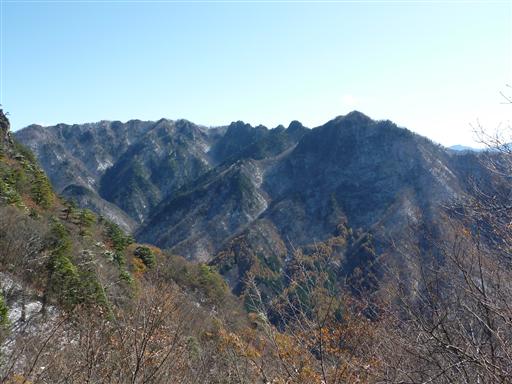 赤岩岳からその奥に連なる赤岩尾根は八丁峠まで続いていて、難易度は非常に高い。