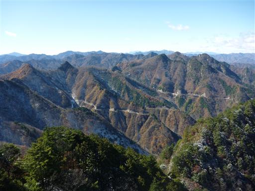 遠くには丸い頭を二つ持った御荷鉾山も見える。これも2年程前に登った山だ。