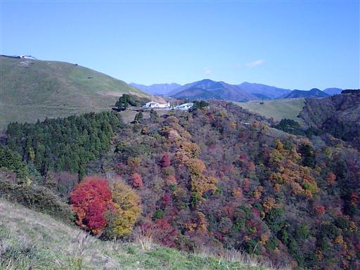 眼下には紅葉と、ゆったりと広がる草原が見える。