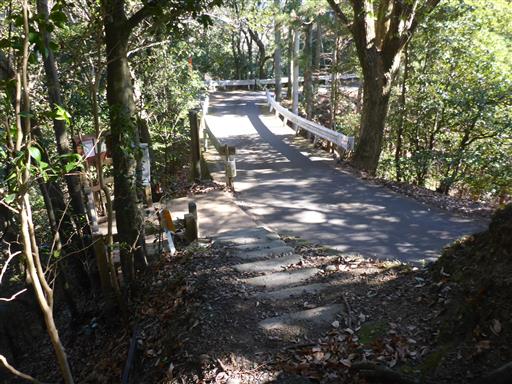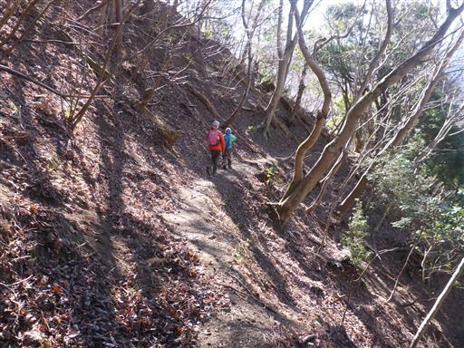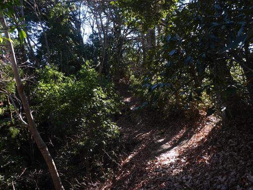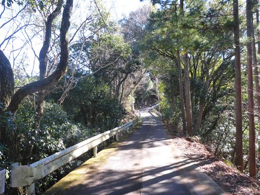 ここからは照葉樹林の道。冬枯れの景色から一変する。