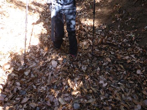 吹き溜まりになっていて落ち葉が大量に積もっている。地面が見えず歩きにくい。