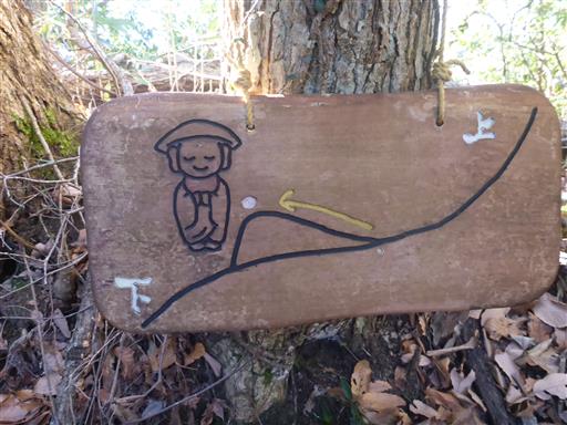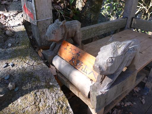 下山は地蔵岩コースを歩く。木彫りのクマが可愛らしい。