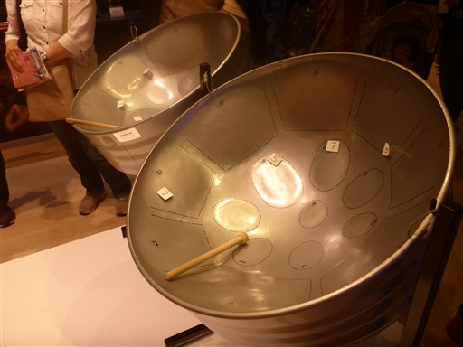 一番目を引いたのがこちらの楽器。スティールパンというらしい。