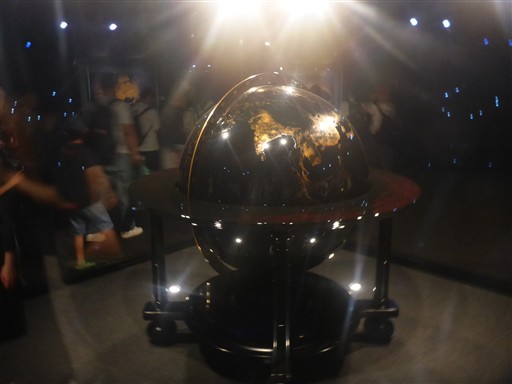 こちらは漆塗りの地球儀。非常に美しい。