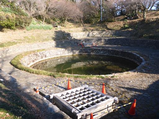 月ノ池。山の上なので、飲料水確保のためにあるのだろう。