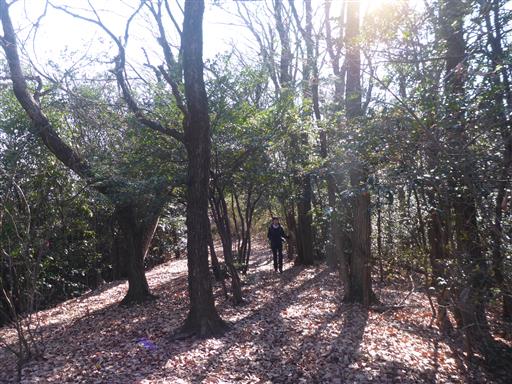 歩きやすい平坦な尾根道。こちらから登る人もいるようで、たまに人とすれ違う。