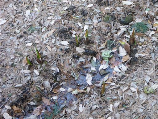当然まだ水芭蕉は咲いていない。小さな芽が頭を出しているが、これが水芭蕉だろうか?
