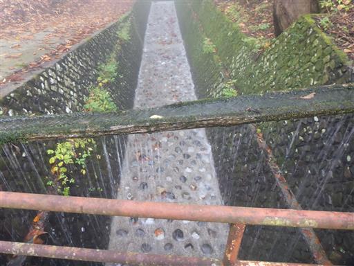 水が流れているのだが、水量が多すぎて半分こぼれ落ちている。