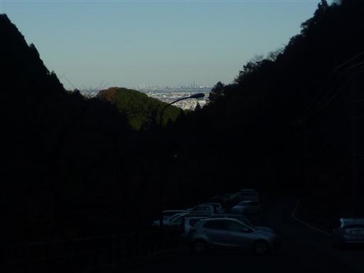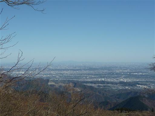 関東平野の向こうに、遠く筑波山がぼんやりと見えている。