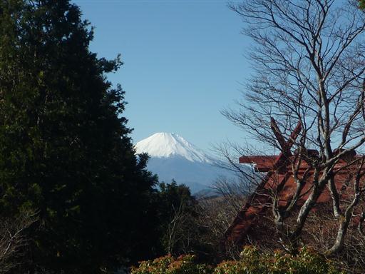 振り向くと障害物の隙間から富士山が頭を出している。