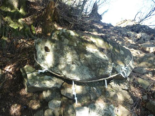 天狗の鼻突き岩。天狗が鼻を突いてあけた穴だといわれている。
