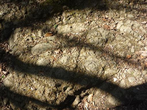 「牡丹岩」と書かれた案内板が立っている。足元に見られる球体の岩らしいが、これのことだろうか?