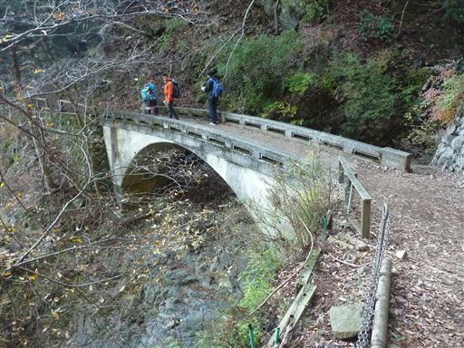 美しい石橋があり、そこから二重滝を眺められる。