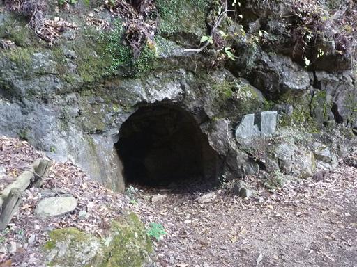 岩に人が入れるくらいの大きさの穴が開いている。