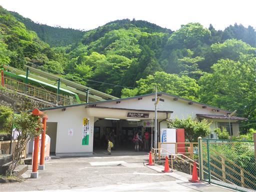 途中で大山寺駅を通過する。途中に駅があるケーブルカーとは珍しい。