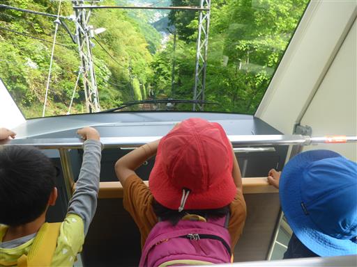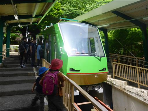 ケーブルカーの最前列を確保。子供の身長ではちょっと前の景色は見にくい。