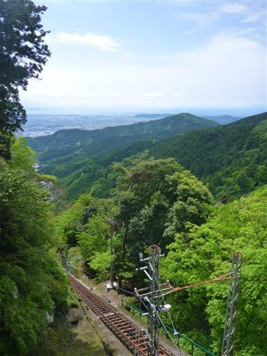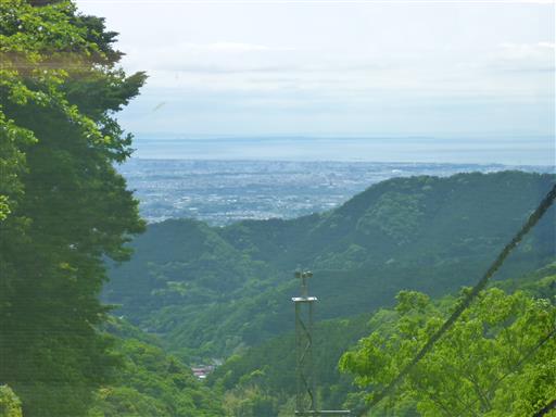 ケーブルカーからは遠くに相模湾を眺められる。