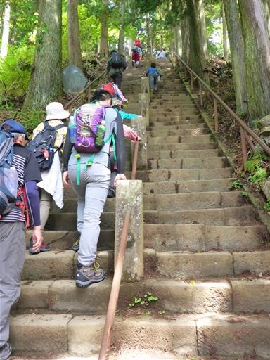 急な階段を登っていく。