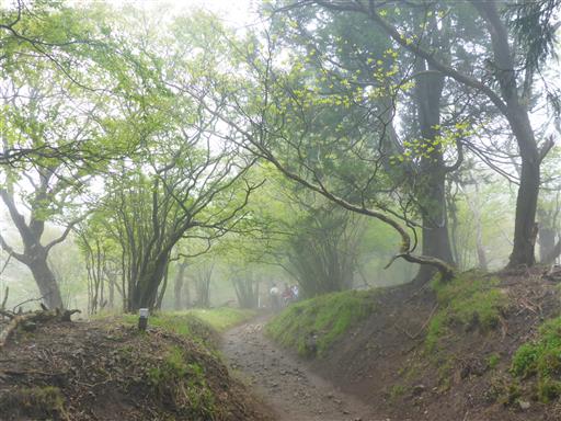 登山道は次第に雲に覆われる。この山は海に近いからか、天気が悪いことが多い。