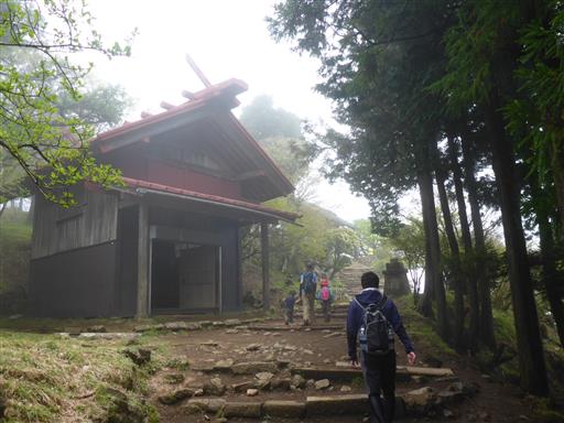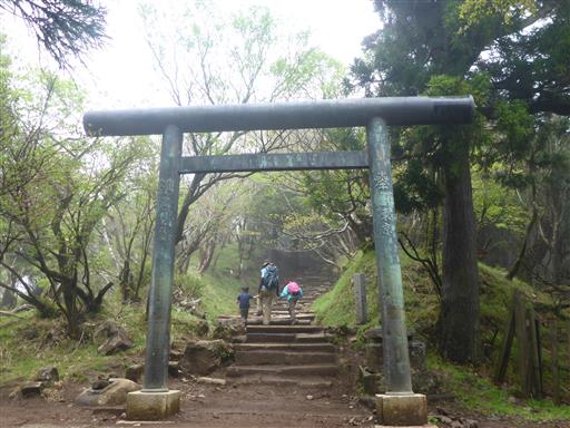 山頂直下の鳥居を潜る。ここを過ぎると少し急な傾斜を一登りして山頂だ。