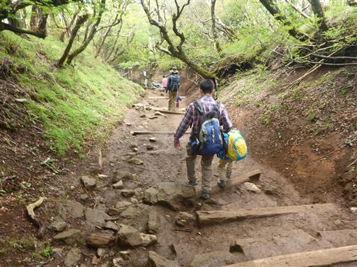 下山は無難に登りに使った道を下る。地面が濡れて滑りやすいので慎重に下る。