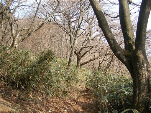 笹道を歩いていく。まだ鎖場は現れない。