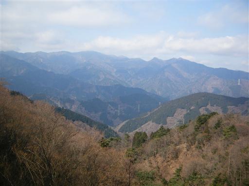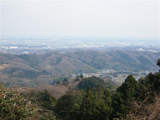 鐘ヶ嶽下山道から関東平野を望む。