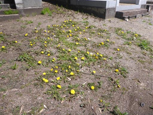 足元にはタンポポがたくさん咲いている。