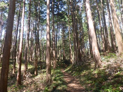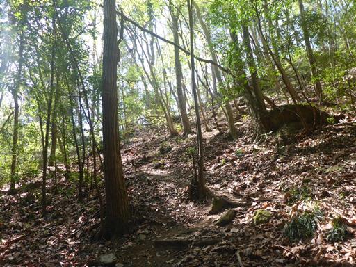 ここから斜面が始まる。周囲は自然林になる。