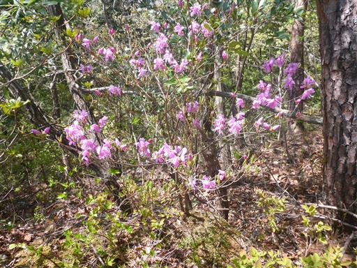 ミツバツツジの花が咲いている。