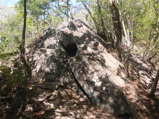 岩が真っ二つに割れている。