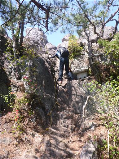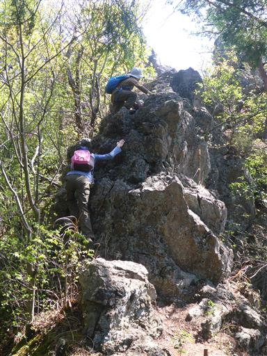 男抱山直下の岩場。登山道は左から巻くルートだが直登してみる。