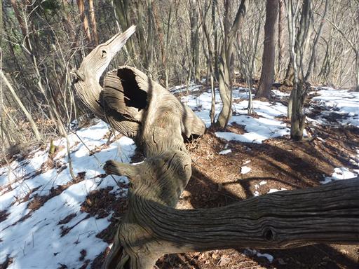美しい模様の倒木が転がっている。