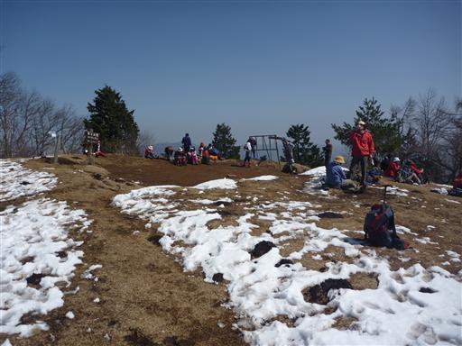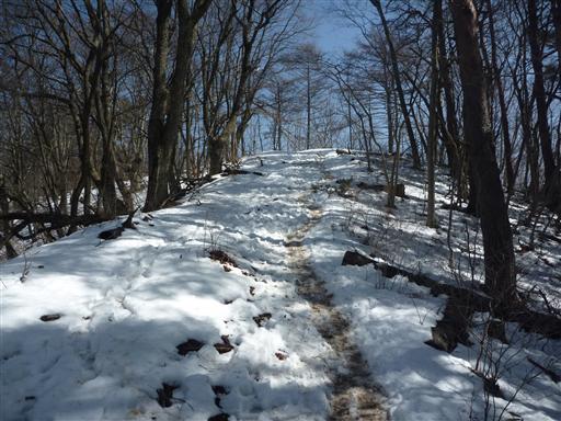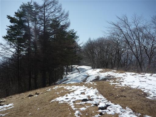 山頂近くはまだ雪が残っている。扇山は百蔵山より100mほど標高が高い。