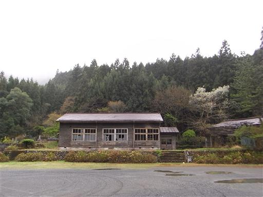 バス停近辺には打ち捨てられた校舎のような建物が建っている。