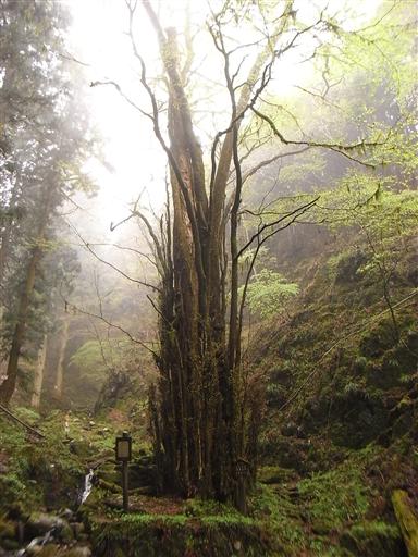 信仰の対象となっている山は巨大な杉が多い。