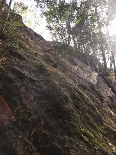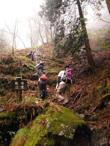 鎖場を下りきる。途中、岩が苔に覆われてつるつるになっている箇所があり