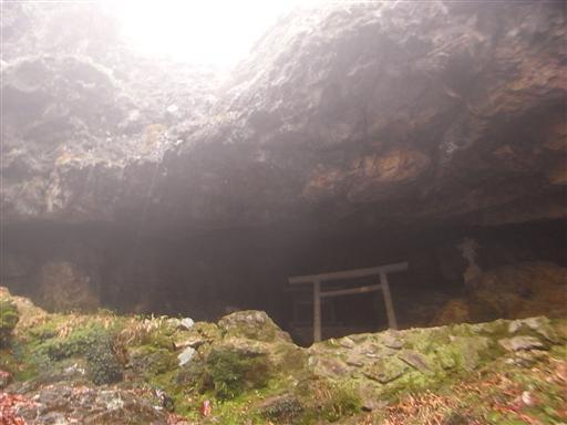 加蘇山神社の奥ノ宮。岩の穴に小さな鳥居が置かれている。