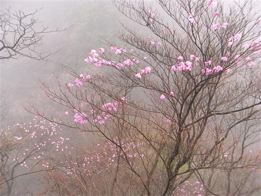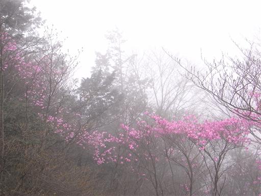 山頂もきれいなアカヤシオに包まれている。晴天だったらもっときれいだったのだが…