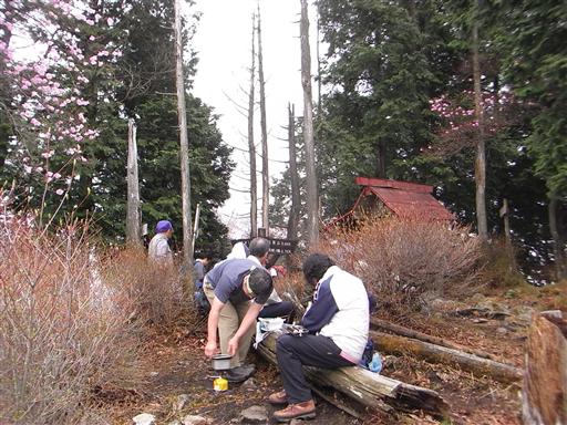 側には東屋が建っていて、多くの登山者が休憩している。