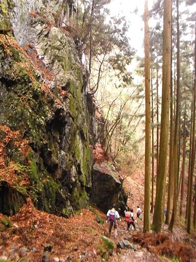 道のすぐ側には巨大な岩壁がそそり立っている。