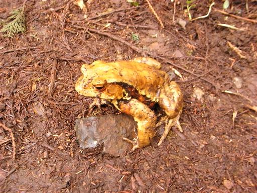 大きなカエルがあちこちにたくさんいる。大きいだけあって動きはのろい。