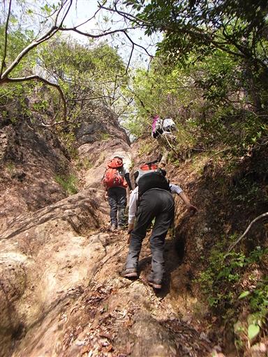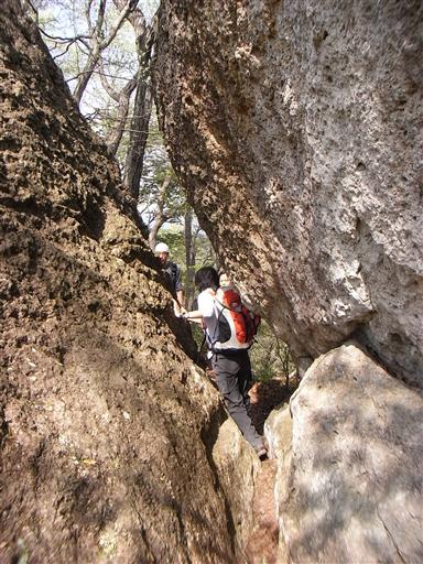 狭い岩の隙間を通過する。なかなか面白い登山道だ。