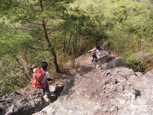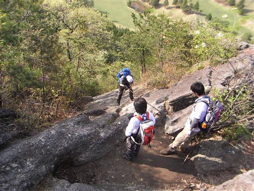 バランスをとりながら、岩を下っていく。石裂山よりこちらの登山道の方が面白い。