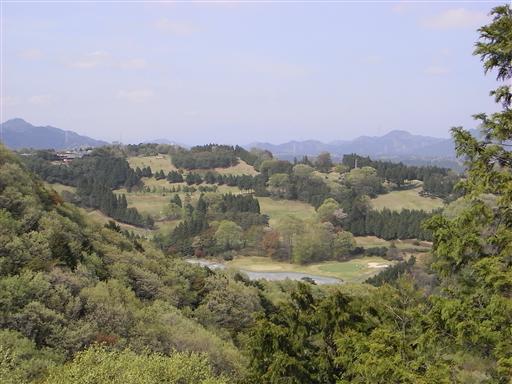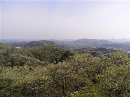 山頂からの風景。低い丘陵地帯が広がっている。